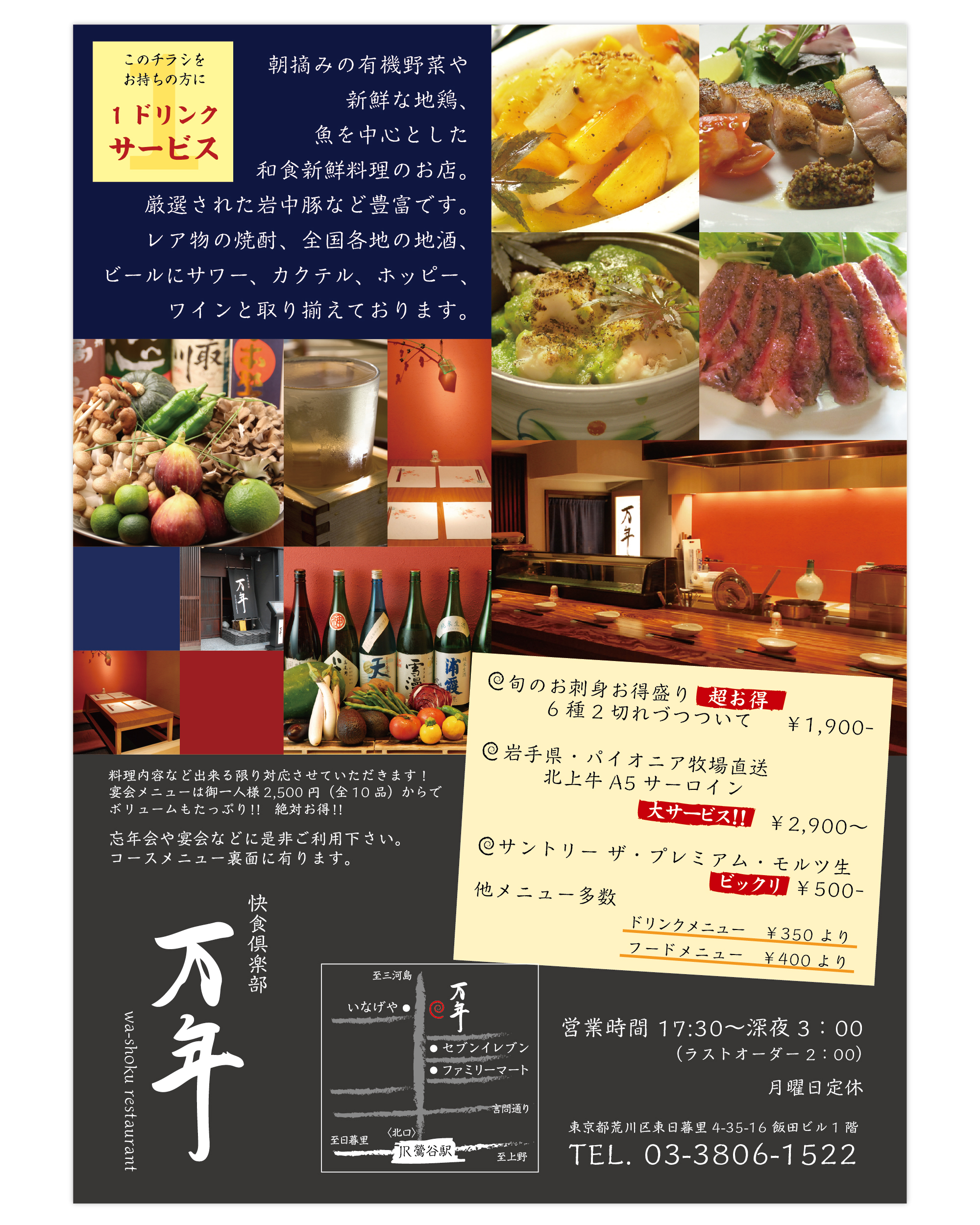 東京・鶯谷の居酒屋「万年」のフライヤーをデザインをしました。
